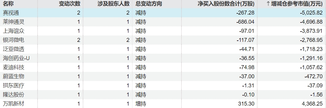 10家上市公司股票遭重要股东减持 真视通减持金额最高10家上市公司股票遭重要股东减持 真视通减持金额最高